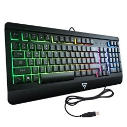 VicTsing Ultra-Slim Rainbow LED Backlit Gaming Keyboard USB Wired with Multimedia Shortcut Keys, 19-Key Anti-ghosting, Ergonomic Wrist Rest, All-Metal Panel Spill-Resistant Keyboard for PC/Laptop