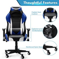 High-Back Computer Gaming Chair, SLYPNOS Ergonomic Swivel Racing Style Bucket Seat Leather Office Chair with Detachable Neck Cushion Lumbar Support for Home Office, 300 Lbs. Weight limit, Blue