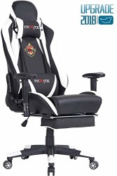 Ficmax PC Computer Gaming Chair High-Back Home Office Chair Ergonomic Office Desk Chair Racing Style Computer Chair with Massage Lumbar Support and Footrest(White/Black)