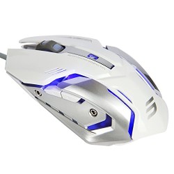 LINGYI Gaming Mouse, 6 Programmable Buttons, 4 Adjustable DPI Levels, 4 Circular & Breathing LED Light,Wired Mouse Used for Games and Office[ White]