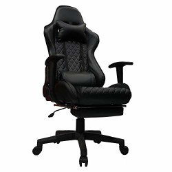 Kinsal Ergonomic High-Back Large Size Gaming Chair with Massage Function, Office Desk Chair Swivel Black PC Gaming Chair with Extra Soft Headrest, Lumbar Support and Retractible Footrest (Black)