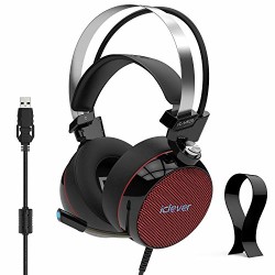 iClever Gaming Headset Noise Reduction – PC Gaming Headset 7.1 Surround Sound Deep Bass, LED Light, USB Gamer Headphones with Mic, Soft Earmuffs, Adjustable Headband