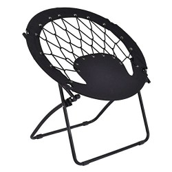 Giantex Folding Bunjo Bungee Chair Outdoor Camping Gaming Hiking Garden Patio Round Web Portable Steel Bungee Dish Chairs for Adults Kids, Black