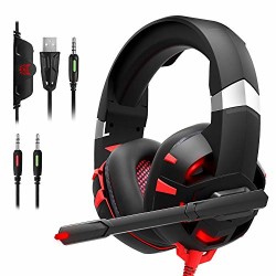 RUNMUS Gaming Headset Xbox One Headset with 7.1 Surround Sound Stereo, PS4 Headset with Noise Canceling Mic & LED Light, Compatible with PC, PS4, Xbox One Controller(Adapter Needed), Nintendo Switch