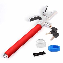 Steering Wheel Lock | Universal Anti-Theft Clamp Heavy Duty Vehicle Safety Rotary Adjustable Lock Self-Defense with 3 Keys (Red)