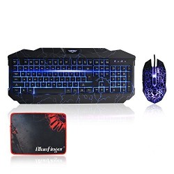 LED Keyboard and Mouse Combo-BlueFinger® USB Wired Adjustable 3Color Illuminated Backlit Gaming Keyboard and 4Color Crack Voiceless Gaming Mouse Black+BlueFinger® Customized MousePad