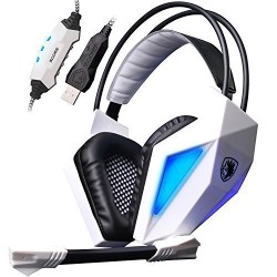 Sades SA-710 Virtual 7.1 USB Surround Encoding Noise Cancelling Gaming Headset DAC for PC Mac Gamer (White)