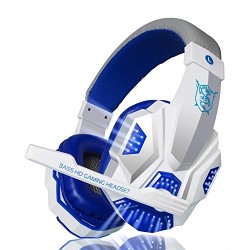 Bluespider@ Pc Gaming Headset with Mic LED Surround Stereo Bass Headband Headphone USB 3.5mm -Blue+White