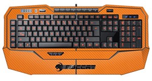 **KEYBOARD NOT INCLUDED** Textured vinyl Orange carbon fiber skin set made for the Roccat ISKU Keyboard, to protect your device from scratches and daily wear and tear. Each set cover top keyboard as shown to give your device a clean and unique look. This skin will protect your Roccat ISKU Keyboard from unsightly scratches and