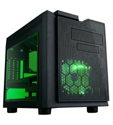 APEVIA X-QPACK3-GN Micro ATX Cube Gaming/HTPC Case, Supports Video Card up to 320mm/ATX PS, 2xGreen Windows, USB3.0/USB2.0/HD Audio Ports, 1 x 140mm Green LED fan, Flip Open Design, Dust Filter-Green