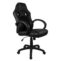 Homall Executive Swivel Leather Office Chair, Racing Chair High-back Gaming Chair Pu Leather and Mesh Bucket Seat,computer Swivel Lumbar Support Chair (Black)