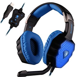 SADES A70 7.1 Virtual Surround Sound Stereo USB Gaming Headset Over-Ear with Microphone Volume Control Breathing LED Lights for PC Gamers(Black)