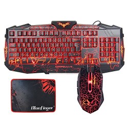 Gaming Keyboard and Mouse Combo-BlueFinger USB Wired LED Backlit 3Color Adjustable Keyboard and Mouse Set with Cool Crack Pattern Adjustable Color Mouse + BlueFinger Customized Gaming Mouse Pad