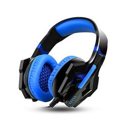 Ashbringer Computer Gaming Headset Pc Games – AS60 Wired Over-ear PC Headphones with Noise Cancelling Volume Control LED Light With Microphone (Black Blue)