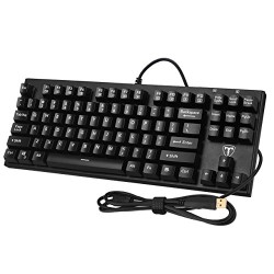 Picket 87-key mechanical gaming keyboard provides a highly accurate responsiveness, perfect for whatever battle you might face. Anti-ghosting 87-key: Anti-ghosting technology ensures all keys do not conflict with each other, multiple keys works great at same time. Ghosting is the problem that some keys do not work when multiple keys are pressed simultaneously. Blue switches : Clicky sound, fast response, let you become the hard-core in the game . Durable : Keys can bear 50 million times keystrokes. Made of metal material, with matte-finish texture, it is sturdy and robust enough to protect it from scratch, bump and corrosion. Complimentary key cap puller tool: We offer you a key cap puller for free. With this gadget, you can pull your key caps easily when you want to clean your keyboard or frequently change your key caps. Non-slip design : Under the keyboard, there are two rubberized holders to prevent it from slip. Specifications: Color: Black, key quantity: 87, The keyboard size: 355.8 x 135.9 x 38.6MM, working voltage: 5.0V DC, interface: USB interface , mechanical switch type: Blue switch (with clicky sound), key elastic force:60G15g, key stroke travel: 4.00.2MM key lifespan: 50,000,000 times strokes. Package included: 1X87-key mechanical gaming keyboard with USB cable, 1x user manual , 1x keycap puller .