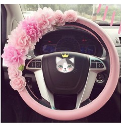 Advanced Pink Leather Cute Flower Car Steering Wheel Cover Wrap Car Interior Trim
