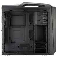 CM Storm Scout 2 Advanced is the upgraded edition of Scout 2. It supports up to 9 fans, including two pre-installed 120mm red LED fans in the front for optimized cooling. It features improved steel reinforced carrying handles that are bolted to the core structure. The I/O panel has been upgraded to include USB 3.0 for high power charging and lightning fast file transfers. The panel can be hidden and protected from dusty battlefields, friendly fire, and melee attacks behind a sliding cover. The first HDD cage can be removed to support monster graphics cards like the NVIDIA GTX 690 and AMD HD 7990.