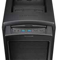 The HDD cage can be easily removed to accommodate long high-end graphics cards. CONVENIENT HIDDEN FRONT PORTS