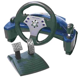 This is a PC Thrustmaster NASCAR Pro Racing Wheel for Window 95. It has quick cam clamping mechanism, strong quick release, positive feel gear shift, gas and brake pedals, heavy weighted pedal base. The steering console will go on any desk top pc. Drivers can be downloaded from company website. Owner’s manual included.