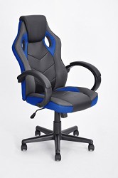 This Executive Racing Style Office Chair PU Leather Swivel Computer Desk Seat High-Back Gaming Chair in Black and Blue is a great addition to your office. Features adjustable seat with arm support. Measures 42 to 45.5 inches high x 23 inches wide x 29 inches deep.