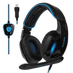 2017 Sades New Version SA902 Blue 7.1 Channel Virtual USB Surround Stereo Wired PC Gaming Headset Over Ear Headphones with Microphone Revolution Volume Control Noise Canceling LED Light (Black/Blue)