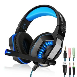 Beexcellent GM-2 Gaming Headset with Mic – Sound Clarity, Noise Reduction Headphones with LED Lights | Soft & Comfy Ear-Pads | Y Splitter for PlayStation 4, Xbox One, PC, Laptops, Smartphones, Blue