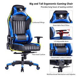 KILLABEE Big and Tall 440lb Gaming Chair – Adjustable Tilt, Back Angle and 3-D Arms Ergonomic High Back Racing Leather Executive Computer Desk Office Chair Detachable Padded Headrest & Lumbar Support