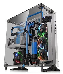 Indulge your system presentation with the new Core P5 Tempered Glass Snow Edition open frame chassis by Thermaltake. The new Core P5 Snow Edition includes an upgraded treatment of three tempered glass panels plus stainless steel pillars to secure. Built with a fully modular design that allows flexibility for 3-way placement layouts (Wall mount, Horizontal and Vertical), dual GPU layout locations: Horizontal and Vertical and placement for liquid cooling components. Uncover greatness with the Core P5 Snow Edition’s panoramic viewing angle now with tempered glass windows to protect and present. Key Features: Dimension (H X W X D): 23.9″ X 13.1″ X 22.4″ Net Weight: 40.6 lb Drive Bays: Accessible 1 X 3.5″ or 2.5″ (HDD tray) Hidden 3 X 3.5″ or 2.5″ (Behind the M/B tray) Expansion Slots: 8 Motherboards: Mini ITX ; Micro ATX ; ATX I/O Ports: USB 3.0 X 2 ; USB 2.0 X 2 ; HD Audio X 1 PSU: Standard PS2 PSU (Optional) Fan Support: Left Side 4 X 120mm ; 3 X 140mm Radiator Support: Left Side 1 X 480mm ; 1 X 420mm Clearance: CPU cooler height limitation: 180mm VGA length limitation: 280mm (With Reservoir) 570mm (Without Reservoir) PSU limitation: 200mm