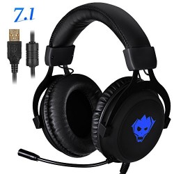 Gaming Headset,AWON Professional 7.1 Channel Virtual USB Surround Stereo Earphones with 57mm Driver Wired PC Gaming Headset,Noise Isolating LED light,Gaming Headphone for PC,Laptop, Computer(Black)
