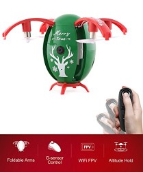 This WiFi FPV X-mas Egg drone is super unique in its mini size. It is mini, foldable and light enough to fit literally anywhere! Because of it’s intuitive G-sensor control function, you can tilt the controller to a specific direction to fly the drone, an exciting flying experience. With 720P camera and Wifi real time