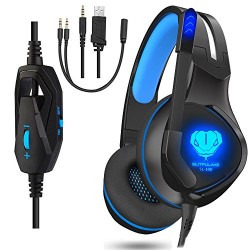 Gaming Headset for PS4, XBOX One, Nintendo Switch, Noise Canceling Earphone, LED Light Stereo Over-Ear Wired Headphones with Mic, Earphone for Laptop, Mac, PC (Black/Blue)