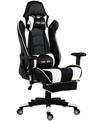 Ergonomic Gaming Chair for PC Video Game Computer Chairs with Footrest,White/Black