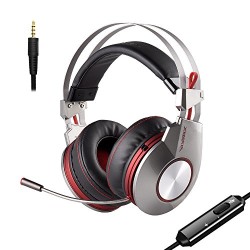PC Gaming Headset for PS4 Xbox One Headphones Wired Over Ear Surround Sound with Microphone Switch Stereo Bass Volume Control Noise Isolating for Laptop, Mac, Computer, Tablet (Silver & Red)