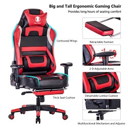 KILLABEE Big and Tall 440lb Gaming Chair with Footrest – Adjustable Tilt, Back Angle and 2-D Arms Ergonomic High-Back Leather Racing Executive Computer Desk Office Chair with Headrest Lumbar Support
