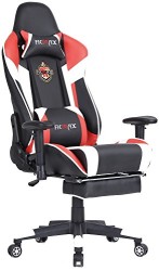 Ficmax High-back Large Size Desk Chair Swivel for Gaming including Lumbar Massager Support and Retractible Footrest (Red/White)