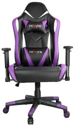 Ficmax Large Size Ergonomic Leather Gaming Chair, Racing Style High-back Office Desk Chair with USB Massaging Lumbar Support, Purple/Black