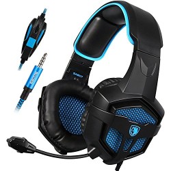 Sades SA-807 Stereo Bass Surround, Soft Memory Earmuffs, Gaming Headset Compatible with PC Xbox One, Mac, PS4, PS4 Pro, Laptop and Mobile Gaming(Black and Blue)