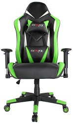 Ficmax High Back Computer Gaming Office Chair Recliner Rocker Tilt E-sports with Lumbar Massaging Support & Adjustable Headrest Pillow, Green/Black