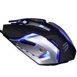 LINGYI Gaming mouse, 6 Programmable Buttons, 4 Adjustable DPI Levels, 4 Circular & Breathing LED Light, Used for games and office[ Black ]