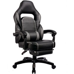 GTracing High Back Ergonomic Gaming Chair Racing Chair Napping Computer Office Chair With Padded Footrest , Black and GRAY
