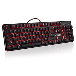 Mechanical Gaming Keyboard With Blue Switch, Reccazr MK910F 104 Keys USB Wried Ergonomical Mechanical Gaming Keyboards with N-key Rollover and Red LED Backlit Perfect For Gamers and Typist(Black)