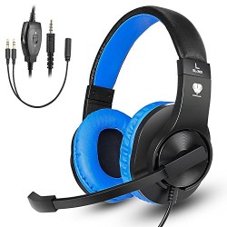 Greatever Stereo Gaming Headset for PS4 Xbox One, Professional 3.5mm Bass Over-Ear Headphones with Mic,Volume Control for Laptop, PC, Mac, iPad, Computer, Smartphones, Blue