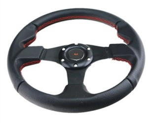 QIKE 320MM 6-Hole JDM Red Stiches Black PVC Leather Steering Wheel