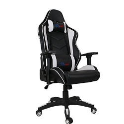 [Upgrade to Large Size] Kinsal Gaming Chair Including Headrest and Lumbar Support, Executive Computer Chair High-back Ergonomic Desk Chair Racing Chair, Leather Office Chair (Black/White)