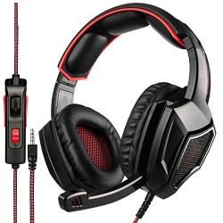 [2018 Newest Updately] Sades SA920 Wired Stereo Gaming Headset Over Ear Headphones with Microphone for New Xbox One / PS4 / PC /Cell phones- Black/red