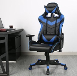 Zenith High Back PU Leather Swivel Gaming Chair with Adjustable Armrest Lumbar Support Headrest Racing Office Chair (Blue)