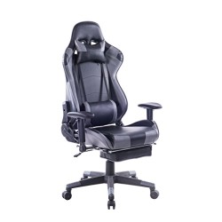 Features: -Tilt locking mechanism 90-135 degree angle adjuster -Adjustable retractable padded footrest -Adjustable 2-D Arms (up and down/left and right) -Adjustable headrest pillow and lumbar cushion -Heavy duty base with smooth-rolling casters -Premium high density PU foam and PU leather material Specifications: -Maximum capacity: 400 lbs -Seating area dimension: 22.4″ x 21.7″ (W x D)