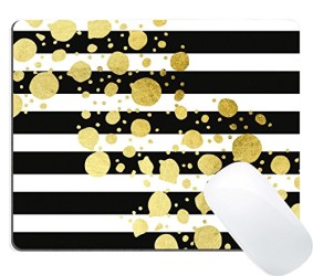 Wknoon Gaming Mouse Pad Custom, Abstract Gold Paint Dots Splatter On Black and White Stripes