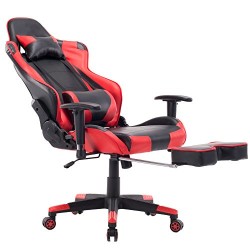 Killbee Ergonomic Gaming Chair with Footrest Large Reclining Computer Chair PVC Swivel Leather Executive Office Chair with Headrest Lumbar Support (Red)
