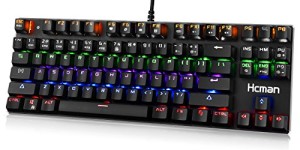 Hcman gaming keyboard is a real mechanical keyboard with Anti-ghosting, unlike other “Mechanical-similar”or”Mechanical-feeling”products, this product uses professional gaming chip and blue switch to ensure a pure mechanical feel and good tactile feedback. Colorful Lighting Compared with other competing products, this usb keyboard has a rainbow LED backlight ,and it also has 9 kinds of different lighting mode make
